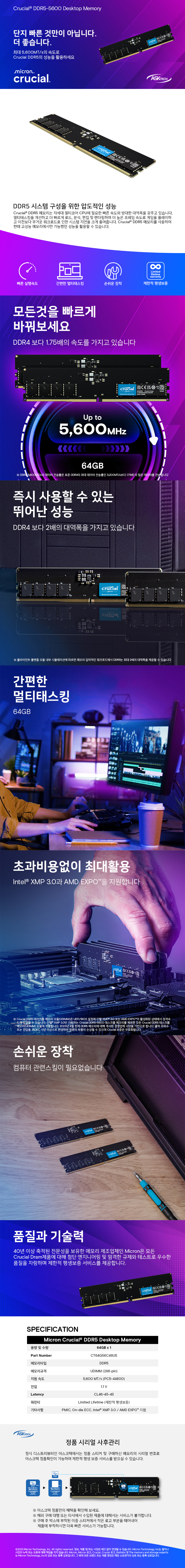 마이크론 Crucial DDR5-5600 CL46 (64GB)