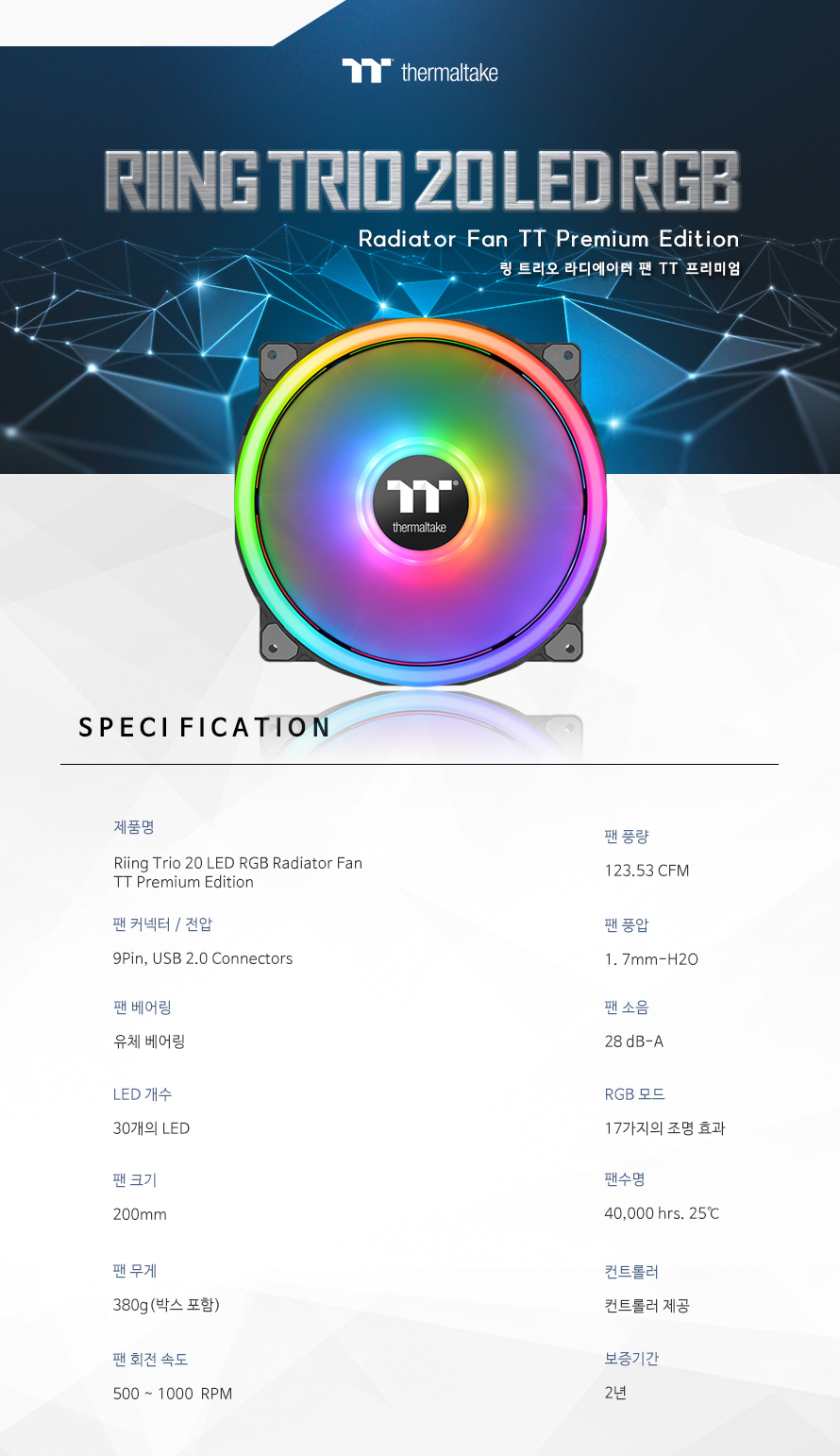 Riing Trio 20 RGB 라디에이터 팬 TT 프리미엄 에디션 (1PACK/Controller)