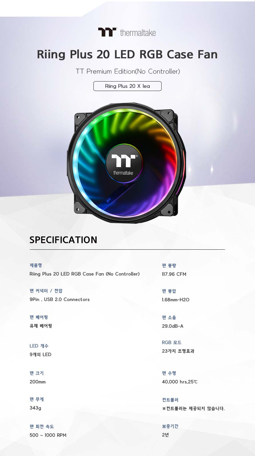 Riing Plus 20 RGB 케이스 팬 TT 프리미엄 에디션 (1PACK)