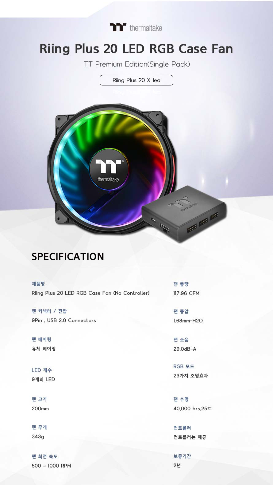 Riing Plus 20 RGB 케이스 팬 TT 프리미엄 에디션 (1PACK/Controller)