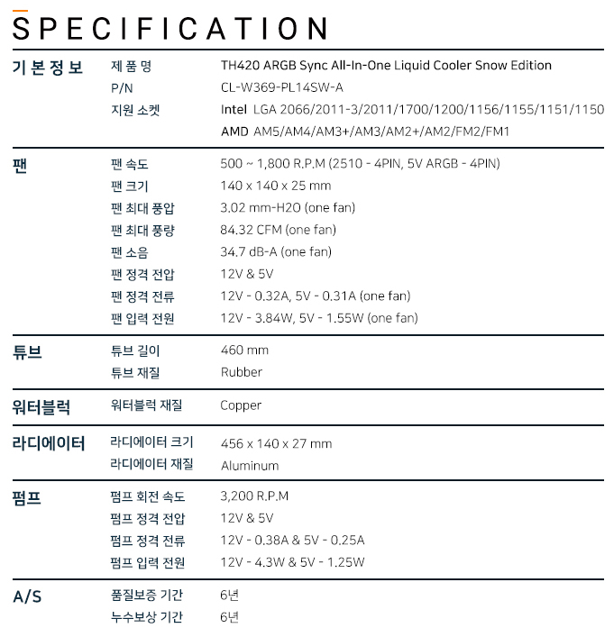 써멀테이크 TH420 ARGB Sync (SNOW)