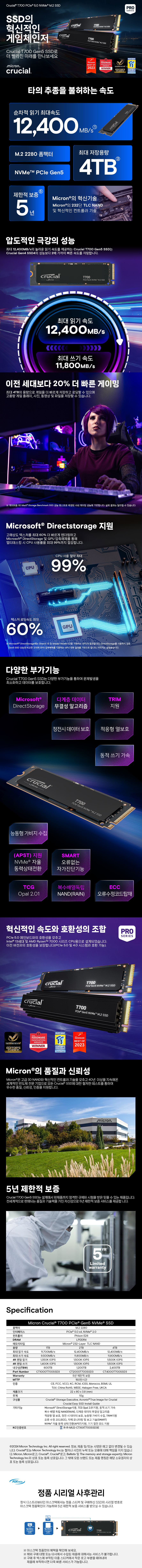 A/S 보증기간 5년 제한적 보증 1TB_CT1000T700SSD3 2TB_CT2000T700SSD3 4TB_CT4000T700SSD3