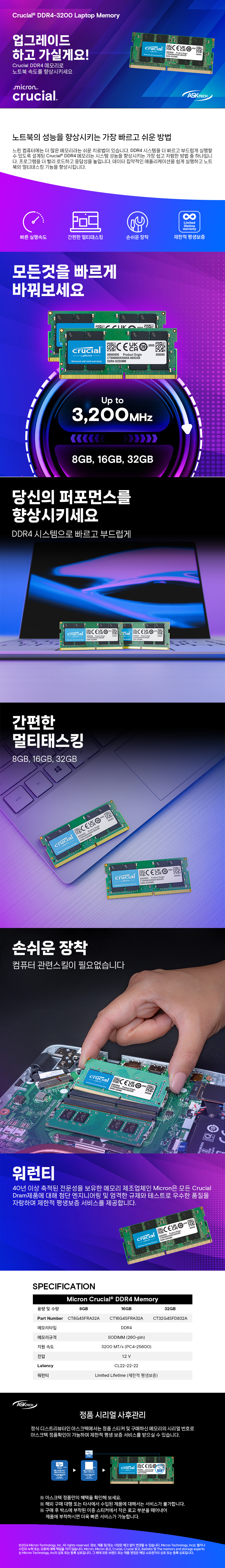 A/S 보증기간 Limited Lifetime (제한적 평생보증) CT8G4SFRA32A CT16G4SFRA32A CT32G4SFD832A