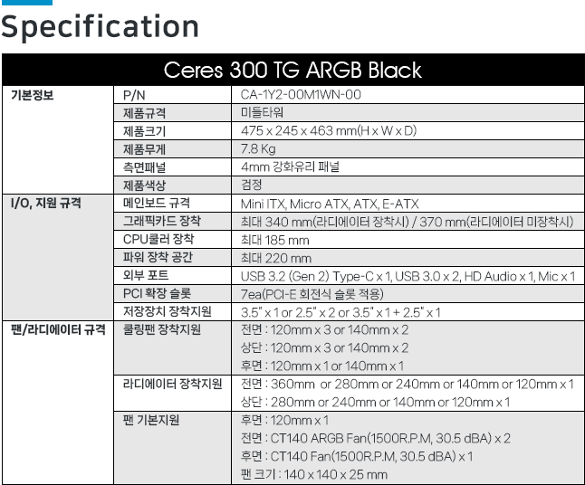 써멀테이크 Ceres 300 TG ARGB (BLACK)
