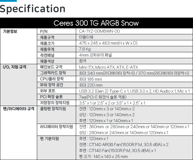 써멀테이크 Ceres 300 TG ARGB (WHITE)