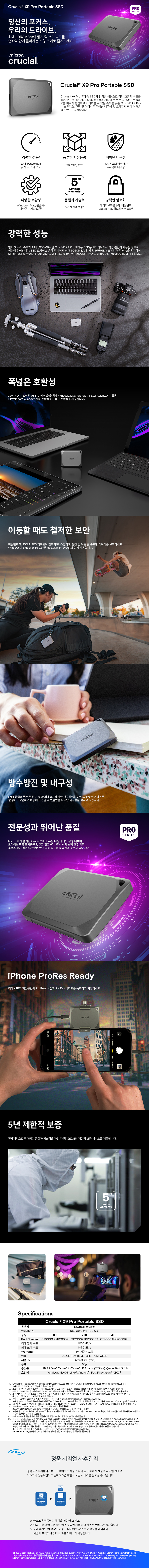 1TB / 2TB / 4TB A/S 보증기간 3년 1TB CT1000X9PROSSD9 2TB CT2000X9PROSSD9 4TB CT4000X9PROSSD9